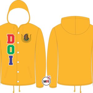 • DOI Coaches Jacket With Hood Made of 100% Polyester Inside Polyester/cotton lining Front Both Side Embroidery Front Two Pockets Snap opening on the front Elastic cuffs Drawstring bottom S to 5XL USA True Sizes Best Quality individual Packing