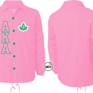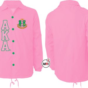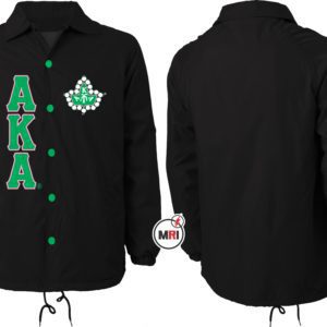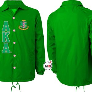 AKA Coaches Jacket Made of 100% Polyester Inside Polyester/cotton lining Front Both Side Embroidery Front Two Pockets Snap opening on the front Elastic cuffs Drawstring bottom S to 5XL USA True Sizes Best Quality individual Packing