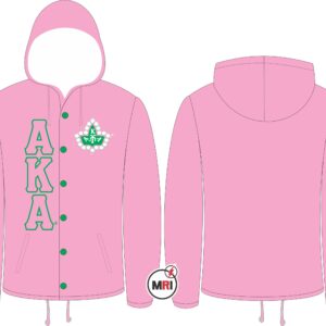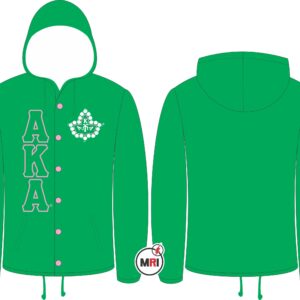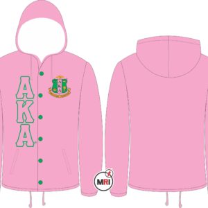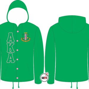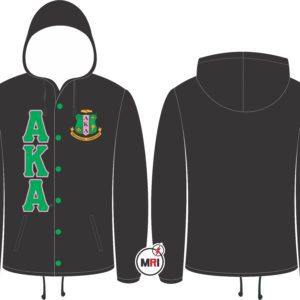AKA Coaches Jacket With Hood Made of 100% Polyester Inside Polyester/cotton lining Front Both Side Embroidery Front Two Pockets Snap opening on the front Elastic cuffs Drawstring bottom S to 5XL USA True Sizes Best Quality individual Packing