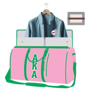 AKA Duffle Bag Made Of Heavy Polyester Cardura Front on both side Machine Embroidery Side Panel Machine Embroidery Good Quality Polyester Handles/Pu Leather Top Shoulder Strap Inside Polyester Lining One Pocket Outside and One Inside Bag Close Style Zipper Size 21x15x10 Inch Individual packing Best Quality