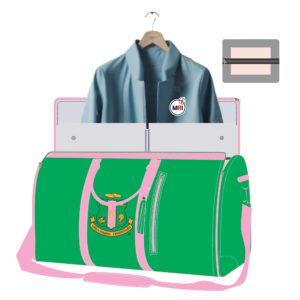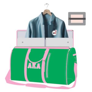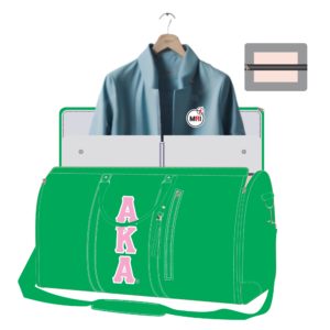 AKA Garment Bag Convert Into Duffle Bag Made Of Heavy Polyester Cardura Machine Embroidery Very Good Quality Polyester Handles Top Shoulder Strap 4 feet on Bottom Inside Polyester Lining Bag Close Style Zipper Size 21x15x10 Inch Individual packing Best Quality
