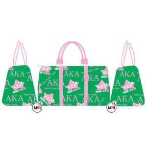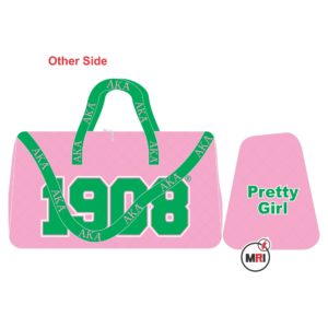 AKA Duffle Bag Made Of Heavy Polyester Cardura Fully Sublimation Very Good Quality Polyester Handles Top Shoulder Strap 4 feet on the Bottom Inside Polyester Lining One Pocket Outside and One Inside Bag Close Style Zipper Size 21x15x10 Inch Individual packing Best Quality