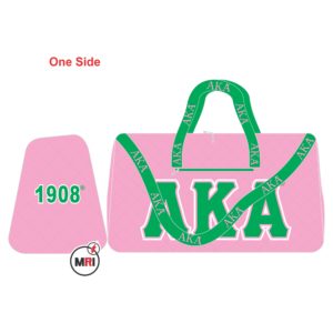 AKA Duffle Bag Made Of Heavy Polyester Cardura Front on both side Machine Embroidery Side Panel Machine Embroidery Good Quality Polyester Handle Sublimation Print Top Shoulder Strap 4 feet on the Bottom Inside Polyester Lining One Pocket Outside and One Inside Bag Close Style Zipper Size 21x15x10 Inch Individual packing Best Quality