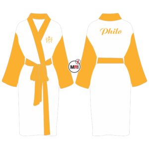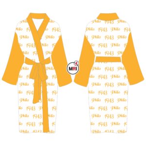 Philo Bath Robe Made of 100% Polyester Satin / Silk Fully Sublimated S to M = One Size L to XL = One Size 2XL to 3XL = One Size 4XL to 5XL = One Size Belt Best Quality Individual Packing