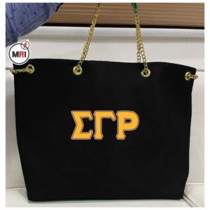 SGR Tote Bag Made of PU Leather/Polyester inside Polyester lining Handle Style Chain Material One Pocket inside Closer Style Zipper Embroidered Fully Customization Individual packing Best Quality